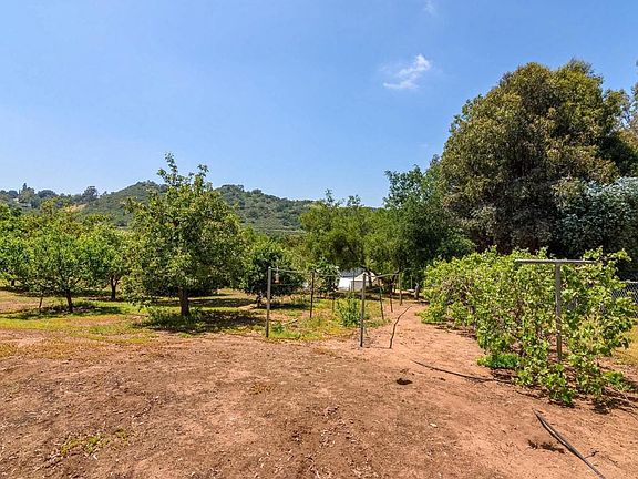 Tucked into the gorgeous hills & mountains of Valley Center on a sprawling 1.25 acre secluded lot, this home is surrounded by scenic views and is just waiting for you to make it your own! Walk down the picturesque terracotta walkway lined with beautiful stone masonry to the home's double wooden front door entry. Inside, the home sports a new central HVAC system, a large living room w/ a grand stone fireplace to cozy up around, a separate bonus room w/ an idyllic wood stove fireplace and a huge laundry room w/ tons of cabinet space. The primary bedroom features an en-suite bathroom & large walk-in closet, while both the secondary bedrooms & living room boast sliders to the home's covered back patio and yard. Outside, the serene, fully-fenced backyard is shaded by gorgeous tall oak trees and equipped with a jacuzzi spa that conveys with the home, a built-in outdoor BBQ, a large lawn area and a separate fully-fenced portion with two sheds/outbuildings & covered pop-ups for your garden or farm. The expansive front yard also includes a detached RV carport, an attached 3-car garage and multiple extended driveways offering plenty of space for boat, RV, trailer & all your toys! The bottom portion of the lot contains a huge orchard featuring fruiting orange, tangerine, grapefruit, lemon, nectarine, plum & peach trees as well as grape vines and separate zoned irrigation. This home is an amazing investment opportunity for builders, investors and/or homeowners looking to escape and customize their own oasis!