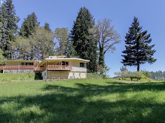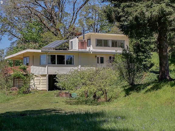 Tucked away behind the trees this mid century modern home has great views to the east and west. Built in 1950 this 3 Bedroom 1 Bath home has an attached apartment with 2 Bedrooms & 1 Bath. New carpet, refinished hardwood floors, new ductless heat pump, new zonal heat in bedrooms,new range & microwave w/vent. Barn, fruit trees and manufactured home that is replaceable make this a great opportunity for extended family living or a rental.