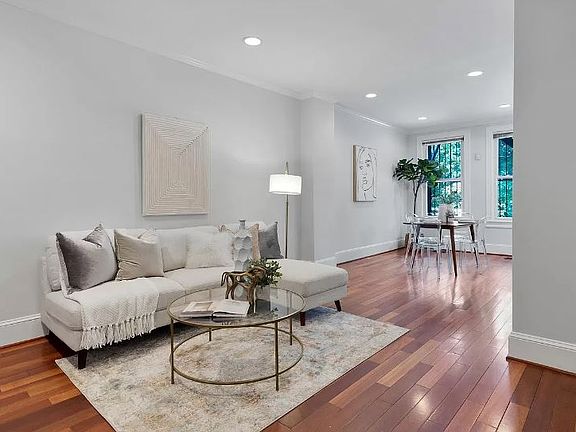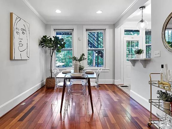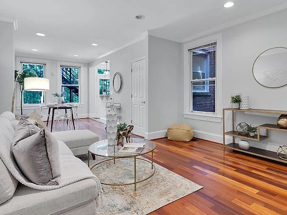 This spacious 1500 sq foot charming 2 bed + office/den (or small third bedroom), 2.5 bath row house condo is uniquely spread over two floors featuring a kitchen and washer/dryer on each floor. The units can be entirely separated by renters that want to live together while maintaining complete and total privacy between upstairs and downstairs, if desired. It is perfectly located between Columbia Heights and U Street. Unit is unfurnished. The upstairs features gorgeous Brazilian cherrywood floors, a primary bedroom with bay windows connected to a full bath, a second bedroom, a half bath, kitchen with dishwasher, breakfast bar, washer/dryer, and outdoor balcony. The light-filled English basement features a massive bedroom, large walk-in closet, storage nook, and a tub with whirlpool jets. Charming exposed brick wall gives a warm vibe. Open plan kitchen and lounge area, plenty of kitchen pantry storage, and a new washer/dryer. It also features a shared outdoor patio space in the back for grilling, working out, or relaxing. Amenities: Walk score of 91. Four blocks from Columbia Heights metro (Yellow/Green) and shopping center (Target, Washington Sports Club), you can dine at award-winning The Queens English or Red Rocks Pizza, or grab a beer at Wonderland Ballroom and enjoy the bustling nightlife of U Street. Dry Cleaning/Laundromat across the road, good Vietnamese restaurant and corner shop market only 1 minute walk. Only 5 minutes walk to Whole Foods, Banneker sports ground/running track and free public Olympic-sized pool. 7 minutes walk from local dog parks, lots of restaurants and convenience markets/shops. 10 minutes walk to Meridian park, Adams Morgan U street, and Mt. Pleasant. Transportation: On street parking is available and easy to find; there is also a Capital Bikeshare dock and bus stop across the road. Available August 1. No smoking. First month rent and security deposit due upon signing of lease. Utilities: Water and sewer are included with rent; tenant pays gas and electricity. Pets considered on case-by-case basis with pet fee. Ideal candidate has credit score of 700+