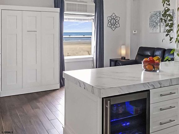 Explore the beauty of this fully-renovated, direct-oceanfront unit featuring panoramic ocean views. The modern interior offers an upgraded kitchen with white shaker cabinets, recessed lighting, custom island, Bosch refrigerator, dual-zone wine fridge, stainless steel appliances, wood-look porcelain tile flooring, a sliding barn door, and bathroom with subway tile. Grand eleven-foot ceilings create an open and airy ambiance. Beautifully updated and offered fully furnished, this property is move-in ready. With its waterfront location, in just a few steps you're on the beach or taking a bike ride on the world's longest boardwalk. Can't get any closer. The picturesque sunrises over the Atlantic Ocean, AC Air Show, and beach fireworks every Saturday in the summer are all spectacular to view from this special unit. Front row seats to it all. Don't miss out on the chance to make this one-of-a-kind beachfront retreat your own!