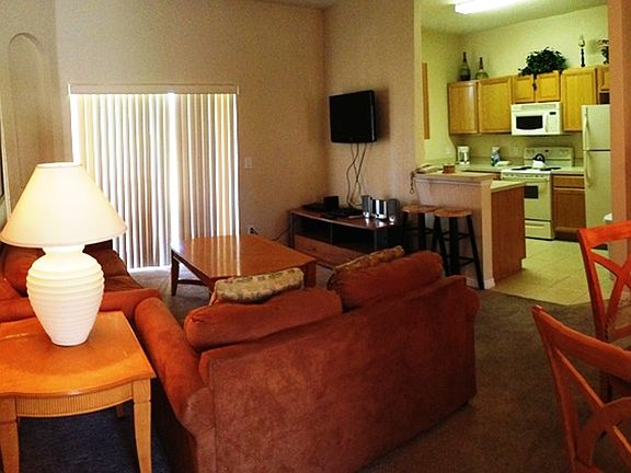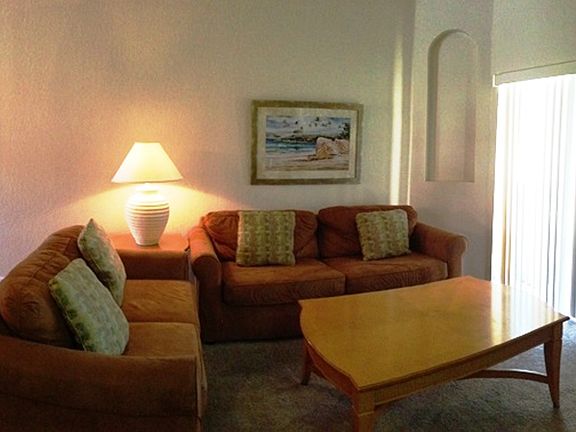 3 bed, 3 bath Resort townhome in an exclusive private, gated Resort community located just 15 minutes from Disney World's Main Gate. The complex consists of 600 town house style homes in a lovely Tuscan Villa style setting with several amenities. You will be delighted with our 2 1/2 acre tropical swimming pool and lazy river oasis, complete with heated pools, water slide with waterfalls, outdoor and indoor Jacuzzis. Sun bathing terraces, a playground and a volleyball court with a pool side "tiki" bar. The fitness center has a therapeutic Jacuzzi, steam room and sauna along with elliptical equipment. The spa allows you to pamper yourself with massage, manicures and pedicures, etc.... Inside you can enjoy dining at our restaurant and bar, surf the internet on your laptop using free Wi-Fi, or utilize our business center. We offer live entertainment (seasonal), event celebrations on holidays and even a market place for the must have items! The Guest Services department is open 24 hours to meet the needs of our guests and owners. Banana Jacks, a 3000+ sq. ft. family style environment with games, food and fun for all ages. Also available is an Onsite Property Management Company. The facilities are for the exclusive use of the Guests and Owners of Regal Palms. Regal Palms is the most highly sought Resort Community in the Davenport area for short term rental. This is a must see property in this Resort.