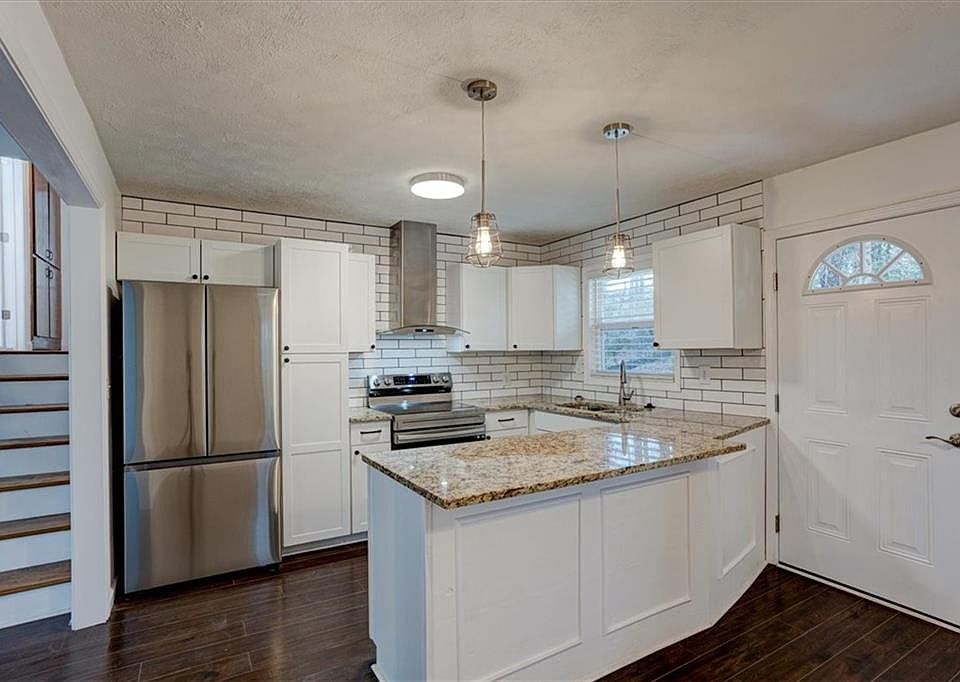 - Features: Breakfast Bar, Cabinets White, Eat-in Kitchen, Stone Counters