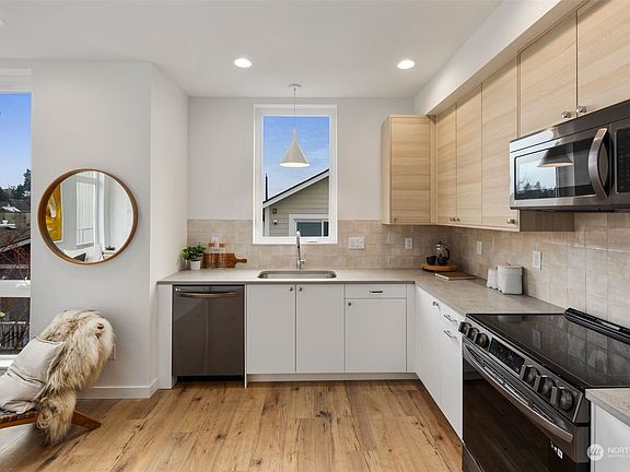 Last 4 bed townhome with a versatile layout to suit your needs. Excellent design package & finishes exhibit the thoughtful details & latest trends. South facing living spaces bring immense natural light throughout the day. Beautiful kitchen with sleek Bellmont cabinets, beautiful backsplash accents and quartz counters. Large primary suite w/ dual vanity ensuite & private deck. 2 additional upper bedrooms + full bath. 4th bed/flex space + 2nd kitchen on the lower level, making a great Airbnb/rental opportunity. HRV Vent System. Prime location to Judkins Light Rail station just a few blocks away. Rooftop decks w expansive view. Dedicated EV-ready Parking! Ask about Lender Bonus.