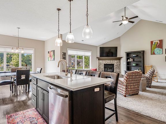 Welcome to your dream home in Muirfield neighborhood. This stunning residence built in 2021 offers just over 2,000 square feet of thoughtfully designed living space, all on one floor. With vaulted ceilings and an abundance of natural light, this home exudes a sense of openness and warmth. The open concept floor plan is perfect for all lifestyles and activities. The large kitchen island, dining area, and living room flow seamlessly together, creating a spacious and inviting environment for everyday living and entertaining. Off the main living area, you’ll find a sun-soaked bonus room, perfect for relaxation. Whether you envision it as a cozy reading nook, a sunroom, or an additional gathering space, this room is a true highlight. Adjacent to the sunroom is a versatile space ready to meet your needs. Whether it becomes a home office, craft room, or exercise space, this room offers endless possibilities.The well-appointed primary bedroom is a serene retreat, featuring a gorgeous en suite bathroom with a fully tiled shower, twin vanities, and a spacious walk-in closet. The remaining two bedrooms offer generous space and excellent closet storage, perfect for family members or guests.This home has been meticulously cared for, ensuring that it is truly move-in ready. Every detail has been attended to, so you can start enjoying your new home from day one.