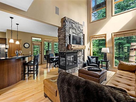 Perched on one of the premier lots in 'Fairway Cottages', adjacent to the 3rd fairway & the 7th tee box on the 18 hole Graham Cooke designed golf course, this prime location provides the privacy of green space along w/ a beautiful mountain view from kitchen window, primary suite & deck. The Developer's own, this special 3 level home features 4 beds, 2 of which have ensuite baths, 3 sided fireplace in the living/dining area, granite countertops, heated tile & hardwood flooring & a generous amount of outdoor deck & patio space. The double garage, cold storage & unfinished basement areas offer plenty of storage for your family's year round recreational gear. Fairway Cottages is a charming bare land strata development connected to the 'Canada's Alpine Village' by the Valley Trail, a 15 minute walk through the trees & over bridges crossing McGillivray Creek. Offered fully furnished & GST is N/A. Bareland fee $175/mo which includes landscaping & snow removal. Measurements are approx. 2022-07-11