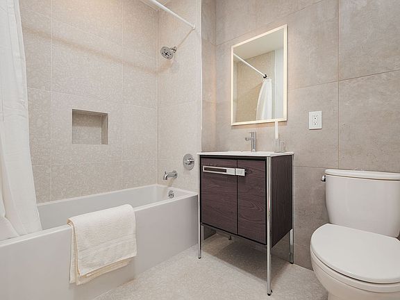 NO FEE BONUS ALERT $1000 rent credit available. Please inquire with agent at showing. Cypress Park at 2715 Fulton is a modern and vibrant building located in Cypress Hills, a family-oriented and safe neighborhood. This lively area offers easy access to public transportation, including the J, Z, L, A, C, and LIRR trains, making commuting a breeze. Residents will also enjoy being just minutes away from Williamsburg, Bushwick, and JFK Airport. Nature enthusiasts will appreciate the nearby Highland Park, a lush 141-acre public park known for its panoramic views of the Rockaways, Ridgewood Reservoir, and the Atlantic Ocean. The park's pathways and wetlands provide excellent opportunities for walking, jogging, and birdwatching, while children can explore and learn at the Children's Farms. The condo-style units at Cypress Park boast beautiful features, including 8x8 windows with a noise rating of 37, natural cherry oak hardwood floors, and individual mini-split units for personalized climate control. The kitchens offer stainless appliances, granite countertops, and ample storage space, while the bathrooms exude a luxurious feel with lighted medicine cabinets and deep soaking bathtubs. The building itself is equipped with modern amenities, including a rooftop with stunning NYC skyline views, a smart package room for convenient deliveries, a full gym room, and a cozy viewing room for relaxation and entertainment. With in-unit WiFi and other convenient features like the Yale Smart Lock, Cypress Park offers a comfortable and contemporary living experience in a dynamic and flourishing neighborhood. Central A/C Hardwood Floors Video Intercom Elevator Natural Light in Living Area Laundry in building Bike storage Storage Space Gym Screening room Game room Shared workspace Public Wifi Outdoor Space Common courtyard Roof access Dishwasher Built in microwave