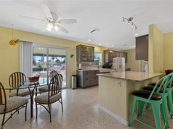 100' wide deep water canal, unique completely remodeled home, open floor plan with refinished Terrazzo floors, kitchen with new cabinets, granite counter tops and impact windows with clam shell shutters. 2 car garage with storage space and a covered carport, enough room to park a boat trailer. The Owners Suite has a sitting area, it's own bathroom and entrances through the house as well as an outside entrances. Cast iron drain pipe has been replaced & supply pipe is copper. Most windows & doors are hurricane and or impact This is great for a mother - in- law suite or rental income. Home has a proven vacation rental income. The 2011 seawall is in great condition, there is room for a pool, at low tide there roughly 5' of water near the seawall, great kayaking, canoeing and a quick boat ride to great fishing, Fort Myers Beach, Sanibel and into the Gulf of Mexico. House was tented for WDO's and recently re-certified with a transferable warranty, has semi-annual pest treatment. Seller has just offered a $2500.00 allowance towards a lanai update or other.