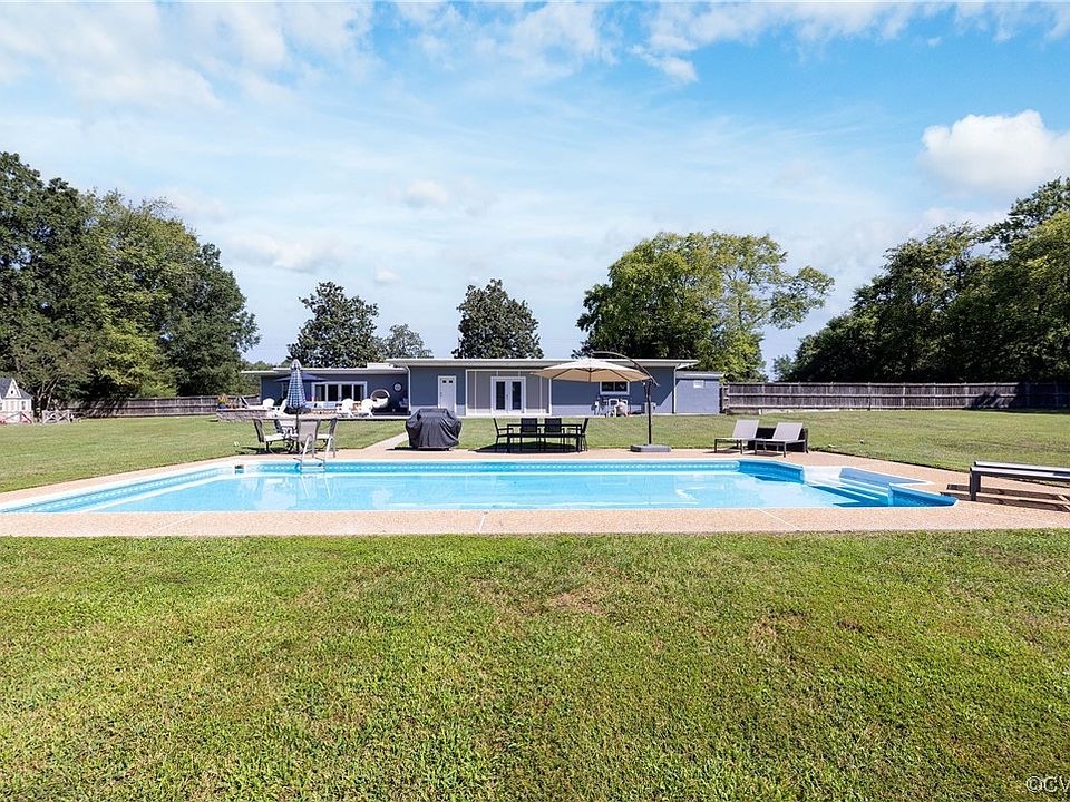 This Completely Renovated Rancher in the West End of Henrico has over 2,800 finished sq ft on almost 3 Acres with an In Ground Salt Water Pool & it is a must see home! This rare, large rancher has 4 bedrooms, 3 full bath rooms, 2 car attached garage & an in ground pool that creates your own private Oasis! Most all of the renovations have been meticulously done over the last several years, which include granite counter tops in the kitchen along with subway tile back splash, black stainless steel appliances, farmhouse sink, custom cabinets, Pergo Outlast+ waterproof wood flooring, recessed lights & walk in pantry. The primary suite has a huge 10x15 bathroom with a custom glass frame less tile shower, separate soaking tub, tile flooring, granite vanities & 2 large walk in closets. The other 2 remodeled full bathrooms have custom tile showers & flooring, granite vanities and new lighting and fixtures. Solid real wood doors & pocket doors are located throughout the home. The huge backyard has a 6 foot privacy fence with a 1,000 +/- sq ft paver patio with a walk way that leads to the in ground salt water pool that is surrounded by an aggregate patio. NO HOA creates many land use options.
