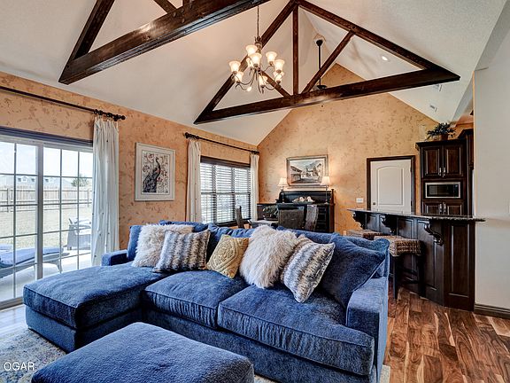 • Interior Features: Beam Ceiling(s), Cathedral Ceiling, Counters - Granite, Garage Door Opener, Storm Shelter, Walk-in Closet(s), Ceiling Fan(s), Washer/Dryer Hookup, Eat-in Bar, Window Coverings - Blinds All