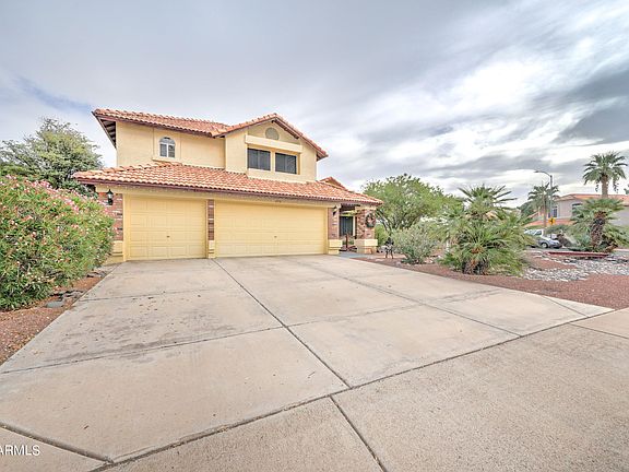 Welcome Home to Kristen in the sought after Pacific Palms neighborhood! Located on one of the largest lots in the NO HOA neighborhood, this home is ready for its next owner. Pull up and fall in love with the front yard that has two bridges, river rocks and low maintenance plants throughout. Head inside and you will step into an open foyer that leads into the first of two living spaces on the ground level. This split level offers both the eat in kitchen and formal dining room on the first level and an additional family room off the kitchen on the main level that leads to the back yard. A bedroom, guest bathroom, and laundry room are also located off of the family room. Head upstairs and you will find the two remaining guest rooms, an additional bathroom and the master suite. (CONTINUED) The master suite has everything you were looking for. With a walk in closet and en suite, this space is a perfect place to relax after a long day. The en suite boasts double sinks, a vanity area, separate walk in shower and soaking tub areas and a private toilet room. Head outside and you will step into your private desert oasis. This large backyard has something for everyone. The covered patio area and ramada section would be perfect for enjoying an outdoor meal. The grassy area will be great for the kids or pets to play in and the pool area is an essential for the Arizona summers. Please make sure to use Aligned to schedule showings!