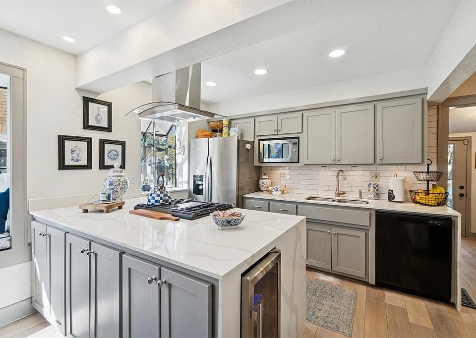 Welcome to this beautiful 1928 Tudor in historic Crestwood neighborhood. The home features an open living dining and kitchen, with new high end finishes, white oak LVP flooring throughout the first floor, quartz countertops with waterfall ends, built-in appliances, lots of cabnitry for storage, and lots of light. The second floor has 3 Bedrooms and 2 bathrooms. the Large Primary suit features 2 closets, lots of light and room for a king bed, the on-suit, has a large soaking tub, custom shower with built-in bench and luxury faucets.. The home has an unfinished 3rd floor the has HVAC and plumping, and could be finished out for additional bedrooms and bathrooms or a large family/media room.