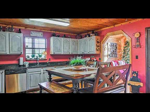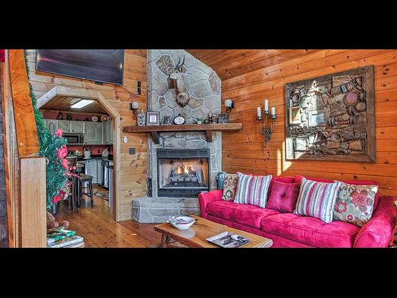 Looking for a quiet mountain retreat, but also like the idea of 24 hour security? This two bedroom, two bath cabin is located in Shagbark Community just minutes from downtown Pigeon Forge. It is a gated community with 24 hour guard house. At the cabin three private decks make sitting and watching the mountains, or reading a book under a covered porch so inviting. Walking in you will immediately relax in a fully furnished home, nice sized kitchen with pretty chandeliers, and spacious living area that surrounds a big inviting fire place. The game room is upstairs, so some can be playing pool while others relax in front of the TV or fire. Shagbark has a beautiful outdoor pool and tennis courts for owners and guests. An entrance to the National Park on the "quite side", allows you to skip driving through Gatlinburg to enjoy the park. This is a great retreat cabin for a few weeks or months!