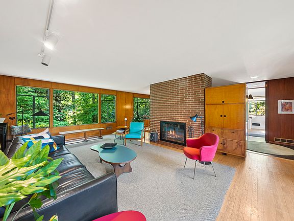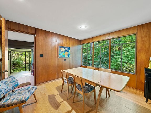 1954 Mid Century Modern by Milton Small, Architect in University Place. The epitome of classic MCM design: Discreet and humble from the street; upon entry you'll discover light-bathed interiors with windows looking out to gardens that continuously have something in bloom, or out to the wooded back yard. *A 0.7 ac lot offers endless possibilities! The Main Level includes a large living area, with bands of windows to the front and the back yards, a dining room with a door leading to the fabulous screened porch. Original built-in cabinetry provides ample storage (rare in this vintage of home!) The lower level includes 2 other bedrooms - each with a full bath. The smaller one is currently used as a den. The larger bedroom is currently utilized as an art/music studio--in the past, it was rented as a studio apartment. There's also a large utility room with a double cast iron sink, and even more storage. Close to NC State, Cannon Park, Raleigh Rose Garden and Olds Elementary, in one of Raleigh's most desirable neighborhoods. *Contributing structure in West Raleigh National Register Historic districts and listed on NC Modernist.