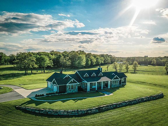 Your dream farm house is here! Live the best of both worlds...peaceful farm life yet only 10 minutes to Springfield in the sought after Rogersville area. This custom home, built by Rick Ramsey, in 2016 is completed with stunning features. This beautiful farm house including two barns, built by Marshfield Builders, on 26.30 acres is a one of a kind property. The first barn is 40'X40' with a 15' overhang and open upstairs with office space as well. The second barn is 60'X40' with a half bath inside. There are two Cattle Fly Oilers on the property, 3 tire waterers as well as 3 livestock shelters. The property is perfect for anyone who has livestock or is wanting livestock in the future. Surrounding land for purchase as well. Upon entering the home you will notice an open living space which show cases the kitchen and gas fireplace. The kitchen includes a walk-in pantry, high end appliances, soft close cabinets, and granite countertops. Just past the kitchen you will find an oversized laundry room that can also double as office space overlooking the wooded acres behind the home. The master bedroom is an absolute show stopper with views of the property from every angle. The guest bedroom consist of a built in window bench, large windows, and french doors to the backyard it really brings the outdoors in! The master bath has a double vanity with cabinet to ceiling backsplash, jetted tub, and walk in shower. The house rests just behind a private pond with functional fountain feature as well. The views are really unbeatable!