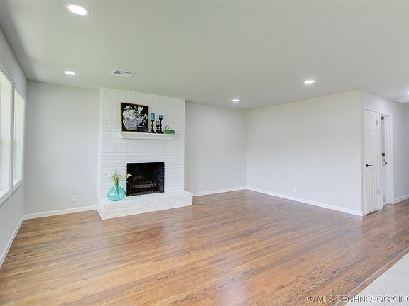 Completely updated historic home in Tulsa’s highly sought after Lortondale neighborhood. 3 bed, 2 bath, 2 car attached garage is the best of new construction with the charm of 1950s midtown. This previously choppy home now has an open concept kitchen and living room. The home’s original gorgeous hardwood floors have been brought back to their former glory. A new tile floor in the kitchen means water and mess is no problem. The kitchen has all new cabinetry with soft close features, fixtures, doors and windows are also all new. The granite counter tops throughout the home match and add to the luxury update. The main bathroom has a large double sink vanity, new tub and tile shower with accent features and new sinks and toilet. The master suite includes a walk-in shower, double sink vanity, walk in closet and second closet hanging space. The master bath was claimed from the original 4th bedroom and includes all new sinks, cabinetry, lighting and plumbing fixtures, toilet, and tile. The original brick fireplace and hearth remain. Original built-in cabinetry has been left in the hallway for additional storage. Bedrooms 2 and 3 have nice sized closets and windows for lots of natural light, but also have updated efficient LED light fixtures. Many invisible upgrades make this all-brick house the perfect hassle-free home. New HVAC, all new wiring, all new plumbing, new ductwork, new windows, new roof, new appliances. Updated recessed LED high efficiency lighting fills the kitchen and living room in the evening when the sun is not filling the space though the large picture window and double doors. The outdoor living space includes a nice sized play yard for children and pets secured by a new privacy fence at the back of the property. Additionally, a large slab has been poured behind the garage ready for a custom space perfect for a remote worker’s home office, podcasting/recording/music studio, she shed, workshop, tiny home for mother or teen, and more!