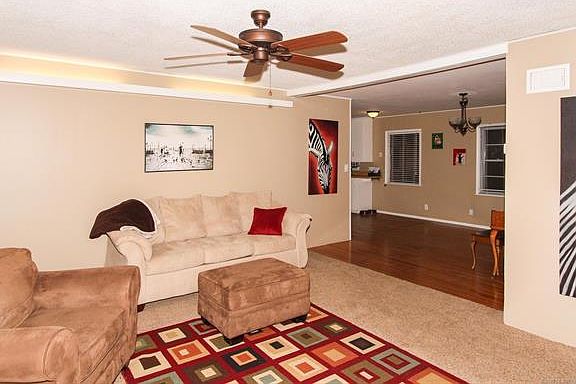 3 bed, 1.5 bath home with 2 car garage on a large corner lot with spacious backyard and privacy fence. Neutral paint colors, partial wood floors, and a sun room. $1,100/mo + $1,100 sec deposit. Small pets allowed case-by-case with anon-refundable pet fee.