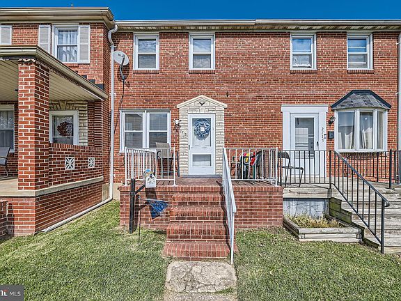 Charming porch front home - - Southbrook Road! Perfect amount of efficient space to call home! Many family memories here - -Traditional floor plan: spacious living room, separate dining room and kitchen are on the main level. Original hardwood flooring underneath the carpet - Kitchen and bathroom (2024) were recently updated-- Newer doors --- Two spacious bedrooms on the second level and an attic space for more storage. Neutral decor and lots of natural light. Rear patio / parking pad! Full basement has a walkout stair to the yard for a separate entrance. Windows for light in the basement- - The front room is a club space that can function as another bedroom or living area.. there is a laundry, storage/utility area. Central air conditioning -new in October 2023 / New sump pump- March 2024 Washer and dryer also convey. Great location in Dundalk! A beautiful greenspace is at the end of the street - - Ballfields, soccer court and playground Shopping and Merritt boulevard are nearby. Easy access to neighboring communities.. Green spaces, state parks and picnic areas as well as waterways for fishing and boating are all nearby!