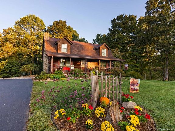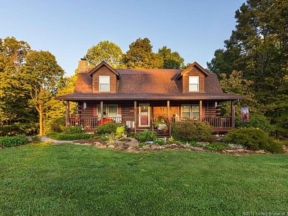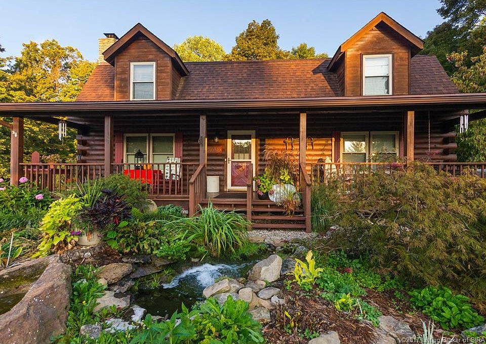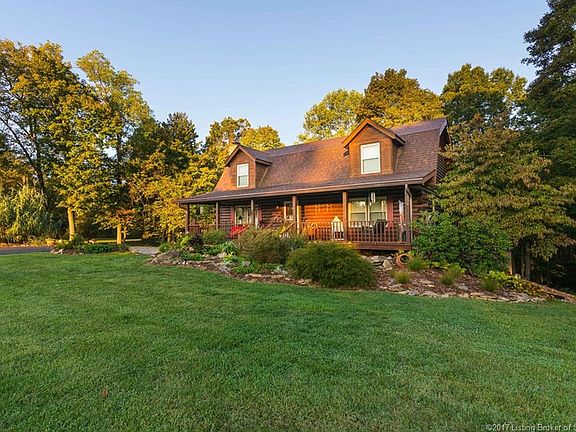 PRICED BELOW APPRAISAL! GORGEOUS 3-4 Bedroom / 3 Bathroom Log Home features a Large COVERED FRONT PORCH and LANDSCAPED Front Yard with KOI POND. Spacious Living Room with Stone FIREPLACE, VAULTED CEILINGS, and an Overlooking LOFT SPACE, Master Bedroom with DOUBLE CLOSETS. LARGE KITCHEN with Stainless Steel Appliances, ISLAND and PANTRY. Open Dining Room with access to LARGE BACK DECK, Great For Entertaining! Finished WALKOUT BASEMENT with another LIVING ROOM & BEDROOM (nonconforming) that opens to a Large, WELL-MAINTAINED YARD. Enjoy a Cozy Country feel while still only a Short distance from Louisville!