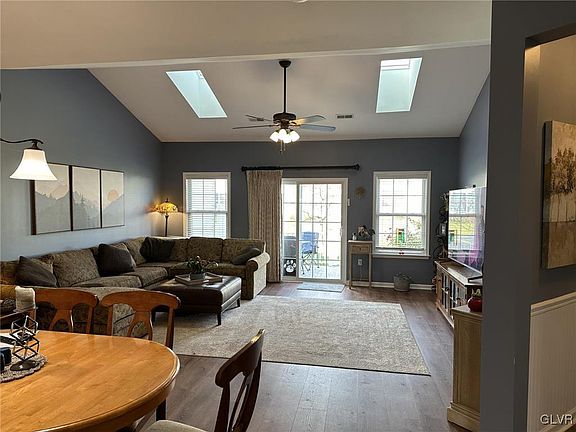 This charming condo located at 2715 Terrwood Dr E in Macungie, PA was built in 2003. With 2 bedrooms and 2 bathrooms and a total finished area of 1,580 sq.ft., this home provides ample space for comfortable living. Many new updates in last two years, to include new central heat and air system, new LVP flooring everywhere except bathrooms, new Silestone counters in the kitchen, new double oven stove, and refrigerator, fence around patio and new electric awning. All appliances except for washer and dryer are included. Home comes with a water softener.Skylights in the vaulted Living Room ceilings allow the sunlight to flood in. Generous sized primary bedroom has large windows, tray ceiling, along with en suite bath and nice sized walk-in closet. Wild Cherry Knoll provides residents with a low-maintenance lifestyle, well-appointed amenities, and plenty of social activities. The Clubhouse includes a swimming pool, pool table, outdoor patio, and physical activities such as bocci ball, shuffleboard, and pickleball. Come enjoy life in a friendly community while someone else mows the lawn and rakes the leaves and shovels snow. The property features a modern design with stylish finishes throughout. The lot size offers outdoor space for relaxation or entertaining. This condo is perfect for those looking for a low-maintenance lifestyle without sacrificing comfort and style. Don't miss the opportunity to make this lovely property your new home in the desirable Macungie area.