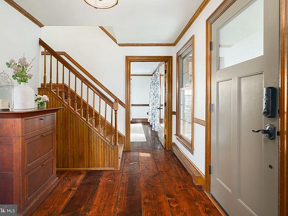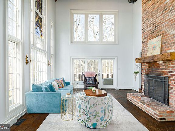 Nestled atop a private hillside in Bucks County, this tranquil retreat welcomes you with a long, winding driveway that promises serenity and seclusion. The property offers an ideal blend of foliage and sunlight, creating an enchanting ambiance throughout. This captivating property boasts a serene setting, enveloped by lush woods and vibrant meadows spanning 3.3 acres of natural splendor. Welcoming you with its inviting rocking chair front porch, the residence exudes charm and character. Inside, random pine floors and exposed wood beams grace the library, dining room, and living room, where a wall of windows illuminates the space, complemented by a cathedral ceiling and a striking brick floor-to-ceiling fireplace, the perfect place to build cozy fires. The family room addition is adorned with reclaimed Barnwood walls, a brick floor, wet bar, and stairs leading to a loft bedroom retreat. Built-in shelves and cabinetry provide both functionality and elegance. Exposed brick and tile floors enhance the cozy bedrooms, including three full baths, among which the newly renovated primary suite stands out with its walk-in closet and private balcony which is the perfect sanctuary. The property's allure extends beyond the main residence, as the three-stall barn boasts a spacious chicken coop and an upper-level guest quarters complete with a kitchen, bath and cozy bedroom. Throughout the property, picturesque views captivate with their ever-changing beauty across the seasons, offering a serene retreat in every moment. As you step into a world of enchantment where the grounds of this home captivate with their natural allure, you can’t help to admire the bubbling waterfall that adds a touch of magic, while decks, patios, and winding paths invite you to explore and savor the surrounding gardens, where wildlife thrives. This special spot known as Hillside Haven beckons with its refreshing ambiance, making it an ideal retreat for a remarkable year-round residence or weekend getaways. Embrace the tranquility and beauty this home as to offer.