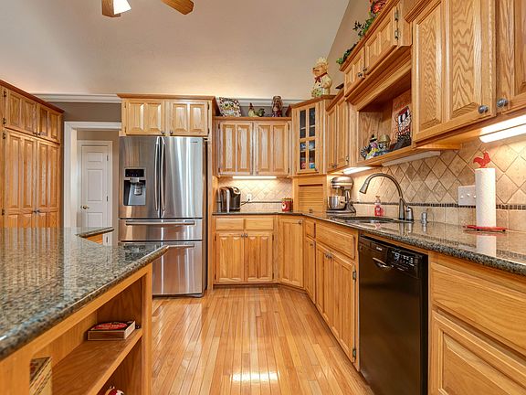 Spotless, comfortable & elegant 4756 SF family home. Looks like a single story home but has a full luxuriously finished walk-out basement with In-Law suite, 2nd kitchen, full bar & game room with Possible indoor theater area & secure storm room. 2715 West Executive Circle in Ozark is a custom 2'' X 6'' built 4 Bedroom home and has been well cared for! Enjoy 2370+ sq ft on one level plus a full walk out basement, 4756 sq ft total! 3 bedrooms and 2 baths on single level with another suite and full bath downstairs with it's own private entry PLUS private patio. Gorgeous corner fireplace, a gourmet kitchen with 2 pantry's, Bosch dishwasher, SS refrigerator, pull out drawers, double ovens and granite counters. The master suite is away from the other bedrooms and has a large closet with HUGE splendid bathroom with all new custom shower & Jetted tub & double sinks! Spacious family room, wet bar, huge work out room which could be a great media room as well, a John Deere Room and extra storage room. Tons of storage in this home. The extra's include an intercom system, Owned ADT alarm system, central vac, 2 new hot water heaters, new roof in 2017, whole house wired for high speed internet plus WIFI, whole yard irrigation system plus drip system irrigation in planters. Yard has spacious enclosed garden. Ozark Heights has a pool and other amenities! Features a Finished and painted 3 car garage w/ 2 openers, a new fence, 10X16 enclosed storage area in yard, covered patio, security lighting, new fencing and 12' gate, water feature, front porch with new lifetime railings, parking on huge driveway for 8 more cars PLUS a double gate to rear yard all on top of a quiet Cul-De-Sac location with OVER 1/3 acre ( .39 ) fully professionally landscaped. Extensively remodeled in late 2019. Home Warranty Included!