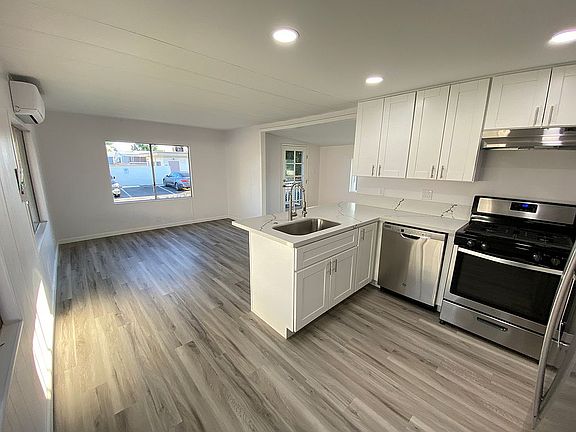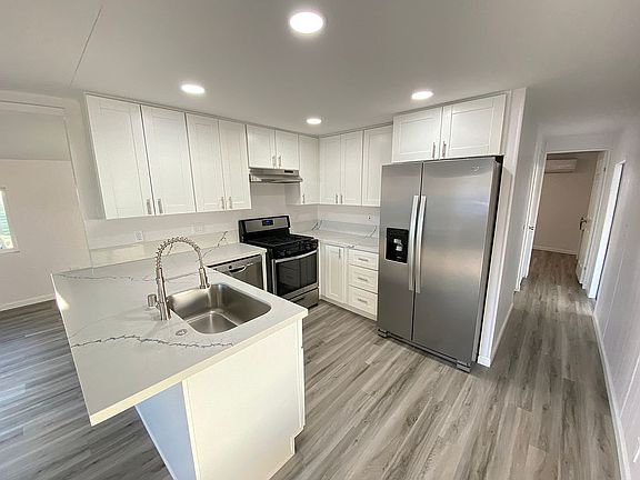 *55+ community*. You must be 55 years of age and older to buy this home! Space Rent is only $799 per month! Includes Trash. OWNER CARRY AVAILABLE! Check out this beautiful 2 bed 1 bath home in the Gated Community of Bel Air Mobile Estates! This community is located near all the major big box retailers! Walking distance to many restaurants and shopping centers. The community is located right off the 215 freeway! Upgrade was just completed! Be the first to live in this beautifully upgraded home! This home has Two bedrooms and one bathroom! The Bathroom has two separate luxury vanities with new faucets. Brand new shower, Toilet, and lighting complete this bathroom upgrade. The kitchen is brand new! White shaker cabinets, with white quartz and brushed nickel pull handles. New Stainless Steel Oven, Range hood, Dishwasher, and Sink complete this kitchen upgrade. The Island has the sink and grinder push located in it. The home also has new lighting throughout, new waterproof vinyl plank floor and new interior and exterior paint. This home has THREE new mini split units for your AC and Heat! The Home Comes with an attached shed, as well as a back room for your laundry and storage. Contact us today! Do not let this opportunity pass you by!