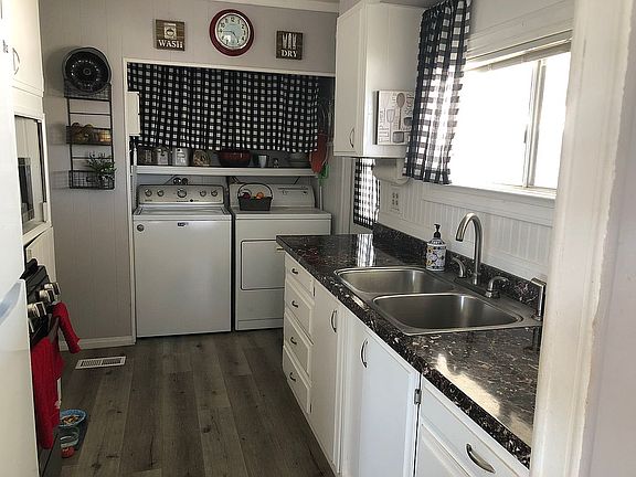 Must see to appreciate. Move in ready. Refrigerator, stove, washer and dryer are included. This home is in a Senior gated community, with two pools, gym(with commercial grade exercise equipment), two clubhouses that offer many planned activities, bingo, bunco, book club, suffleboard, crafting, etc. This is a cash only sale. Price lowered for quick sale. Must be approved by park management before purchasing. Space rent is $800
