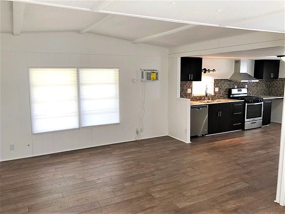 For sale is a upgraded two bedroom, one bathroom home in a beautiful 55+ community in Sun City/Menifee. The community is located next to freeway access and many shopping centers! The ceiling has been completely re-framed in the kitchen and hallway, then we hung drywall in those areas. The home has 12mm distressed oak laminate throughout, with carpet in the bedrooms! In the kitchen, we have installed new cabinets and a new tile counter top and back splash. A new gas oven has also been installed in the home to match the 2018 upgrades! The home has new paint on the interior and exterior of the home as well as new skirting around the bottom of the home in most areas. The bathroom has refinished counter tops, cabinets, showers; and new toilets. The home has a double vanity sink with waterfall faucets! This home also has a newly sealed roof to keep you dry in the California rain storms! I know I am missing all the finishes like sink hardware, door hardware, etc., but they are all there as well! Space Rent is only $595 per month! Contact us for owner financing price and terms! We cater our financing to the client!