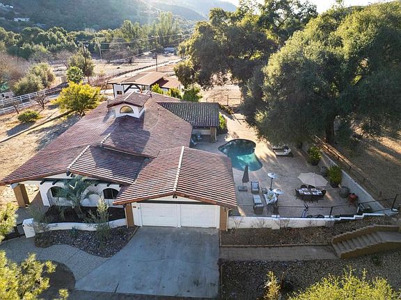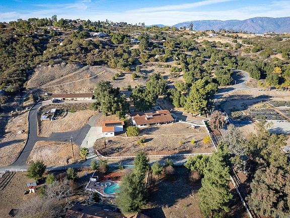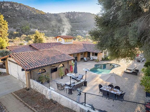 Welcome to Valley Center – A Country Retreat Like No Other Nestled in one of the most desirable rural communities, this impeccably updated home blends timeless adobe charm with modern efficiency. Offering 5 bedrooms, a bonus office, and 3 full baths on 3.4 acres of fully usable land, this stunning property showcases breathtaking hillside views and nearly 3,000 square feet of open concept living. Interior Highlights and Unique Architectural Features: Grand beams and a vaulted elegance that brings you to a turret-style feature that creates an awe-inspiring play of natural light without direct sun exposure. Beautiful arched windows frame the scenic views, while additional open archways invite warmth and light. Elegant wallpaper accents throughout the home add a refined touch. Chef’s Kitchen: New IKEA cabinetry with pot and pan drawers and brushed nickel hardware. Granite center island with a vegetable sink; Corian countertops around prep areas. 5-burner range and built-in stainless steel appliances for a seamless cooking experience. An extra-large pantry ensures you’re always well-stocked. The luxurious living room has a wood-burning fireplace, stone accents, and a custom hearth and mantel (plenty of room for oversized furnishings). A bonus room (currently an office) can double as a formal dining room if desired. The Primary Suite has Ample space for a king-size bed, nightstands, and a cozy sitting area. A romantic fireplace sets the perfect ambiance for cool nights. Elegant ensuite bath with a large soaking tub, walk-in shower, dual raised sinks, and lots of linen storage. Guest Wing & Additional Spaces: Two guest bedrooms plus a powder room near the primary suite. Two additional guest bedrooms, a full bath, and a family den area with separate access – currently used as an Airbnb rental (option to continue renting or integrate into main living space). Spacious laundry/mudroom with built-in cabinetry, prepped for dog wash station, and exterior access to RV garages. The Resort-Style Backyard has a Sparkling pool with passive solar heating, Extensive flagstone and paver hardscaping, complemented by a retaining wall with ambient lighting. Towering oak trees provide natural shade, creating a tranquil outdoor escape, Bistro lights, perfect for evening gatherings and alfresco dining under the stars. Multiple sliding doors offer seamless indoor-outdoor living. Expansive Lot with Endless Possibilities: Mature fruit trees, including Fuyu persimmons and citrus varieties. Plenty of space to add horse facilities, a barn, a turnout arena, raised gardens, an ADU, and a Jr. ADU. Dream Garage & RV Setup: Attached two-car garage for everyday convenience. Detached RV garage with two oversized bays, perfect for car enthusiasts, a workshop, ADU conversion, vehicle lift, or loft addition. Separate driveway access for added privacy and functionality. Additional Features: Anderson windows with privacy shades, Recessed lighting and elegant fixtures, Double chimneys, central HVAC, septic system, and propane. This extraordinary Valley Center estate is more than just a home – it’s a lifestyle. Whether you're looking for a peaceful retreat, an entertainer’s paradise, or income potential, this property has it all. Schedule a showing today and experience the magic for yourself!