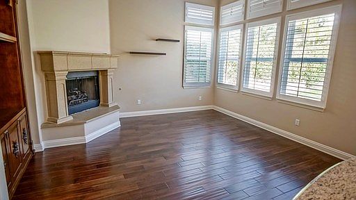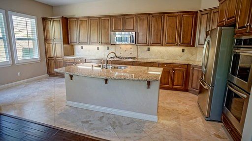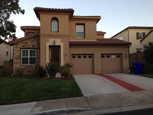 Santa Clarita Rental located off of Valencia Boulevard and Sycamore Meadow Drive in Valencia. This 4 bedroom, 3 bath, 2,725 square foot home features a vaulted ceiling in the entry and living room with wood flooring and plantation shutters. The Dining Room offers dramatic lighting, plantation shutters and connects to the Family Room & Kitchen. The Family Room has a fireplace, is light and bright with plenty of windows and opens up to the Kitchen. In the Kitchen you will find tile floors, granite countertops, tile backsplash, plenty of counter space and cabinets and a center island.The downstairs Master Bedroom has wood flooring, ceiling fan, plantation shutters and a slider to the back yard. This luxurious Master Bath has a large soaking tub, separate shower, dual sinks, tile flooring and a large walk in closet with built in organizers.Upstairs you will find a landing with sitting area with extra windows for extra light and carpeted flooring throughout the other Bedrooms. Also upstairs you will find the good sized secondary Bedrooms with ceiling fans. One of those Bedrooms features an attached Bathroom. HOA Amenities and Gardener Included. Pets accepted but small dogs only please.