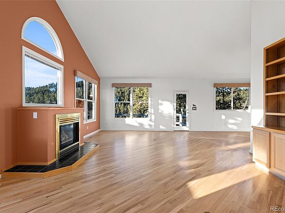 Remarkably maintained property on nearly an acre (double size lot) in Sun Ridge. This home sits on a special spot in the neighborhood, and the oversized lot means you won't have to worry about future development blocking your mountain view. The Floor plan is designed with entertaining in mind on both levels. The main level features a large kitchen to gather in, with access to a wrap around patio with breathtaking views. The lower level comes with a wet bar, and a walkout to another covered wrap around patio making indoor/ outdoor living a breeze. The primary bedroom features yet another patio, and an oversized den space with more than ample closet space. Situated right of Hwy 74, you'll be able to access to Evergreen lake, the main strip, I-70 and 285 with ease.