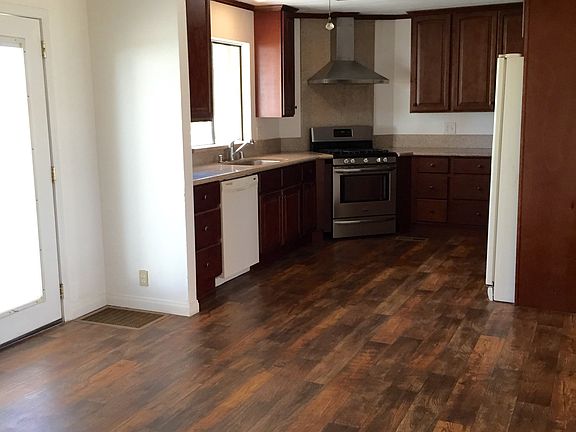 Amazing property opportunity with 5 acres, a manufactured home and 3600 sq ft Butler Bldg plus a tractor to boot. The home has 3 bdrm, 1.75 baths, a remodeled kitchen and has 1800 sq ft. Freshly painted inside and out with new flooring throughout. It comes with RV hookups, a chicken koop with chickens included and fresh eggs daily, an in-ground Sampson auto hoist, an orchard with plum, almond, pomegranate, and cherry trees, and a fenced pasture for your animals. Also, take a look at the 1 bedroom, bath and full kitchen apartment in the Butler building with private outside entrance, which could be rented or used for guest quarters. There is a 100,000 BTU gas infra red heater in the butler bldg. Of the 5 acres 2.5 have separate utilities and be site for another home. This 2.5 acreage would have own street entrance. So many options – Come take a look.