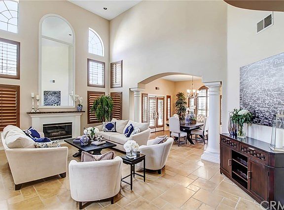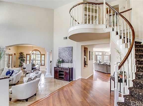 Located high up on the hills with unobstructed panoramic views of city lights and lush hillsides from this highly desired elegant & spacious Moulton Ranch home. With one of the best floor plans available, this home is an entertainers dream with Pebble-Tech Salt Water pool and spa with waterfall, and gazebo. The Cavetto model is the largest in Moulton Ranch with a flowing floor plan of 5 bedrooms, 4.5 bathrooms, one located on the main level with en suite, an office/ library and bonus room! The grand double door entry opens into a formal living room with massive vaulted ceilings & custom fireplace & multiple windows to allow sunlight to pour in . All bathrooms have been remodeled with exquisite attention to details. The Kitchen is a cook's dream with granite slab counters on the island and main counter surfaces with stainless steel appliances. The huge master suite includes a sitting area, dual fireplace, dual walk-in closets and a spectacular view of the city lights and Nellie Gail hills! Nearby you will find Blue Ribbon Schools, shopping, restaurants, beaches, Nellie Gail Swim & Tennis Club and Equestrian (@lower membership fees), and close to 5 & 73 freeways. No Mello Roos and low HOA, this home won't last long!