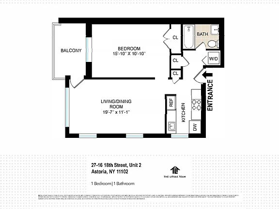 **Stunning 1BD/1BA Home with King-Size Bedroom, Spacious Open Living Room, Stainless Steel Kitchen with Breakfast Bar & Dishwasher, In-Unit Washer & Dryer*, Available now.** Featuring an open layout and corner living room with large windows, the space is flooded with natural light. A private balcony is found just off the living room, and the open kitchen allows for seamless entertaining and is fitted with ceasar stone quartz countertops, a large breakfast bar, and stainless steel appliances including dishwasher, gas stove and oven, microwave, and french-door refrigerator and freezer with built-in water filter & ice machine. The large bedroom with a double wide closet is found off the living room, which can easily accommodate a king-size bed, multiple dressers, and more as needed. **Itemized Tenant Fees as follows: Application Fee: $20 per leaseholder/guarantor Security Deposit: Equal to 1 month's rent First Month's rent: Equal to First Month's rent ** Tile floors and plenty of closets are found throughout, and parking is available to tenants at additional cost. Conveniently located off of the Astoria Blvd N/W train. Only moments to the train and another 20 minutes train ride to midtown Manhattan, and amongst grocery stores, pubs, bakery, delis, and more.
