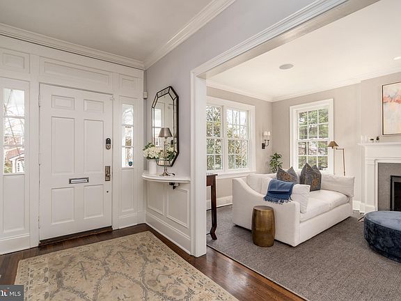 Timeless elegance meets modern comfort in this beautifully reimagined 1925 center-hall Colonial, offering six bedrooms, four and a half baths, and over 4,800 square feet of refined interiors. Perfectly positioned on a lush lot on a picturesque, tree-lined street in Observatory Circle, this home captivates from the start with its classic architecture and charming front porch—an inviting prelude to its gracious interiors. Inside, exquisite architectural details abound, including elegant millwork, high ceilings, rich wood floors, arched doorways, and two fireplaces. The main level seamlessly blends formal and casual living, featuring a grand foyer, a sophisticated living room, a formal dining room, and a sunlit family room that opens to the chef’s kitchen. Designed for both function and style, the kitchen boasts a Wolf gas range with venting hood, custom cabinetry, generous counter space, and ample storage. A butler’s pantry/wet bar enhances the space, perfect for entertaining, while a well-appointed mudroom with custom built-ins adds everyday convenience. A powder room completes this level. French doors lead to a beautifully landscaped rear yard, designed for outdoor enjoyment with a stone terrace, 86” outdoor TV, built-in speakers, a gas line, a motorized awning, and a sport court. Upstairs, the luxurious primary suite occupies a private wing, complete with a sitting room, a spacious bedroom, a custom walk-in closet, and a marble-clad en-suite bath. Three additional generously sized bedrooms and two bathrooms complete this level. The third floor offers two more bedrooms and a full bath, providing flexibility for guests, office space, or a private retreat. The finished lower level expands the home’s living space with a large recreation room, a gym/flex space, and a mechanical/laundry room. A detached two-car garage completes this exceptional offering. Nestled on a serene, tree-lined street in Observatory Circle, this home offers easy access to top-rated schools and the city’s best shopping and dining. A rare blend of historic charm and modern luxury, this is a home to cherish for generations.
