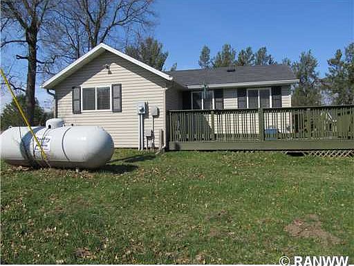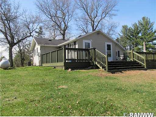 MOTIVATED SELLER!! Looking for space to grow? Nice 2 bedroom home on 3.51 acres. Walking distance to Ten Mile Lake. Full basement under kitchen & bedroom, crawl space under the rest of the house. Washer & dryer in closet, wood floors. Big wooden deck across back of home, central air, 24x35 garage with 13x24 storage. Big yard, located between New Auburn & Chetek