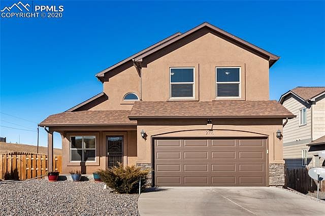 Welcome Home. This immaculate 5 bed 4 bath 2 story home with attached 2 car garage is ready for new ownership. Nestled on a cul-de-sac with beautiful mountain views, this spacious gem comes complete with a finished basement. As you enter you're greeted with a warm, and clean living space that radiates pride in home ownership. The main level features a large living room, family room with cozy gas fireplace and a bathroom as well as your laundry room. The kitchen features plenty of counter space and cabinets for storage, stainless steel appliances, and walk-out to the back yard with a patio. Upstairs there are 2 bedrooms with full bath and an fabulous master bedroom retreat with adjoining 5 piece master bath to include a walk in shower, double vanity and soaking tub. The master bedroom retreat also offers walk in a closet and lots of privacy. There are 2 spacious bedrooms and additional full bath is in the basement. You will also find a large entertainment space and ample storage abound. This home is conveniently located off I-25 and is only minutes away from schools, shopping, parks, entertainment, Military Bases and so much more. Don't wait. Call today to schedule your private tour!