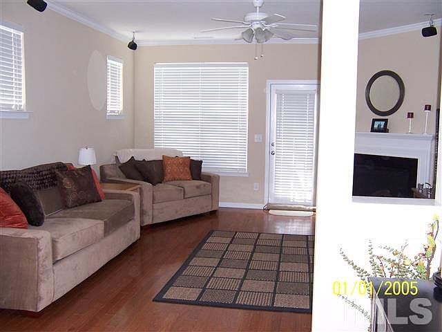Great end unit townhouse within walking distance to the community pool, playground & clubhouse. Entry foyer w/art niche. hardwood flooring through 1st level. Cozy living room has gas log fireplace and is pre-wired for surround sound. Kitchen features SS appliances, center island, 42"cherry cabinets, tile backsplash & under cabinet lighting. Spacious bedrooms. Ceiling fans in all rooms. Vaulted ceiling in master bedroom. Enjoy the outdoors on patio. Washer, dryer & refrigerator to convey. Must see!
