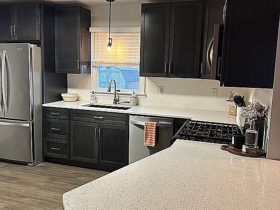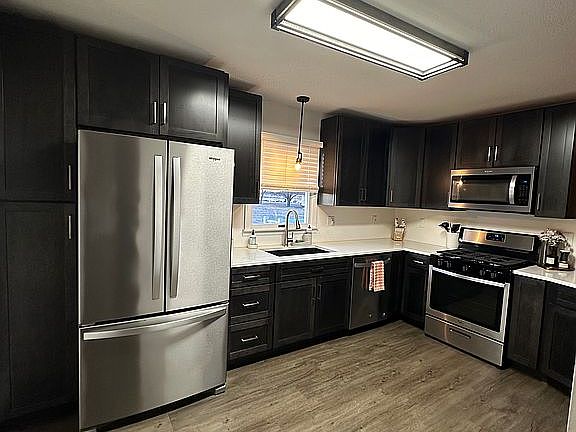 - Appliances: Dishwasher, Refrigerator, Dryer, Microwave, Washer, Stainless Steel Appliance(s), Range