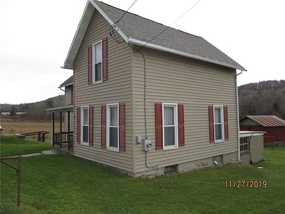 Very Nice, well maintained, solid property with excellent CURB APPEAL sitting on 1l2 acre!! Take a look at this 4-5 bedroom, bath and half property located about 8 miles from Hornell! Family owned farmhouse for 57 years! Featuring spacious 2 car garage attached to house w/ access right up to the first floor. Cute kitchen, formal dining room, family room and office/bedroom, or additional living space!! Half bath located on first floor as well !! Upstairs 4 bedrooms, full bath along with built in cupboard space. It truly is your typical Farmhouse with Charm! With some updating you could have yourself a lovely property !! Vinyl siding, off road parking, and an awesome pole barn !! Furnace 16 years, siding, windows and roof all around 18-19 years. Updated electric as well! PRICED TO SELL !!