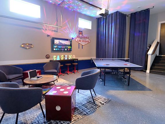 Welcome to NashVegas, the ultimate Nashville retreat. This expansive modern oasis features four bedrooms and twelve beds, perfect for large groups, families, bachelorette weekends, and business travelers. Located just 2 miles from downtown Nashville, you'll have quick access to the city's vibrant nightlife, amazing shopping, and legendary music scene. Enjoy incredible skyline views from the rooftop deck, complete with BBQ and outdoor dining. This home offers a game room with poker, ping pong, and a 4K Smart TV, along with smart TVs in the living areas and three of the four bedrooms. Stay connected with high-speed internet and enjoy the convenience of a smart lock keyless entry with a Ring Doorbell. The fully stocked modern kitchen features state-of-the-art appliances and a coffee machine with coffee grounds provided. Additional amenities include a washer/dryer with detergent, towels and linens, a hair dryer in each bathroom, an iron and board, and a Bluetooth speaker/record player in the main living space. The property offers plenty of free street parking directly in front of the rental, a one-car garage by moving the foldable ping-pong table, and one parallel parking space in front of the garage. Nestled in the heart of Nashville, this neighborhood is a lively hub of trendy boutiques, craft cocktail bars, and top-notch eateries. Just minutes from downtown, you can explore nearby spots like The Gulch, Hillsboro Village, or East Nashville for unique shopping, local art, and irresistible Southern cuisine. A short rideshare ride will take you to Broadway, Bridgestone Arena, Nissan Stadium, and BNA Airport. The property is also only 1.5 miles from the new Top Golf. Guests can enjoy 24/7 support via chat, text, email, or phone whenever needed. Early check-in or late check-out is free, subject to availability and with a minimum of 8 hours notice. The property is designed with celebrations and group getaways in mind, allowing bachelorettes, birthdays, or group trips. Guests can drop off bags before check-in by messaging in advance. After booking, you'll receive a quick link to your personalized Guest Portal to confirm reservation details and access property information. Stay connected or work remotely with ease, thanks to the high-speed internet available throughout the home.