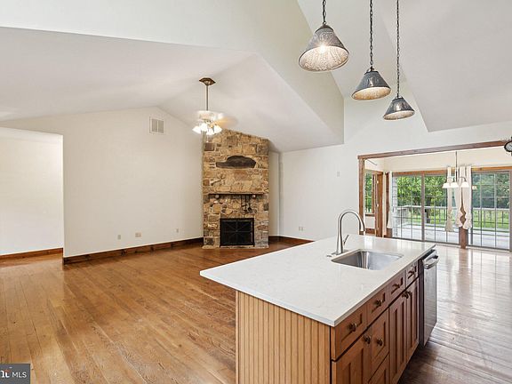 Experience the enchanting character of 2716 Hunting Ridge Rd—a one-level cedar ranch nestled on 10.5 sprawling acres, gently bordered by the calming back creek and picturesque views that define its serene charm. This captivating 2500+ Sq Ft, 4‑bedroom, 2½‑bath farmette-style home exudes warmth with its dramatic vaulted ceilings, soaring stone fireplace, and bright breakfast room overlooking the countryside. The heart of the home is a fresh, NEWLY renovated kitchen, boasting gleaming quartz counters, stainless appliances, and custom hardwood floors flowing throughout—while the cozy dining room evokes classic family charm. Step outside onto the massive wrap-around front porch or rear deck, perfect for entertaining, enjoying the outdoors and the home’s natural views, or simply savoring quiet moments in your private rural oasis. Designed to delight, this home features recently re-stained and sealed cedar siding with a light sandy beige color (2023), like NEW roof (installed 2022), and NEWER HVAC system (installed 2024), water softener system (fully maintained 2024) - all while offering seamless single-level living for ease and comfort. A large metal barn and smaller shed are ideal for storage, large yard equipment, or hobby crafting - all amid a beautiful pastoral setting. The primary suite has generous dual walk-in closets, a large bathroom with dual sinks, a whirlpool tub and stand up shower. While the secondary bedrooms also offer walk-in closets—ensuring accessibility and convenience. In addition to the properties massive amount of outdoor space, it possesses ideal creek frontage, with access to water for your larger animals or farmette projects. Hunters bring your deer stands! No doubt, this property captures rare character and remarkable appeal—ready to welcome its next homeowner to a lifestyle of comfort through peaceful country living.