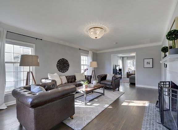 Beautifully renovated 2 story feat. 3/ bed and 3 baths. Spacious floorplan w/ stylish decor.Stained hwd flrs,enameled woodwork.Kit/FR combo.Kit. feat farm sink,carrerra marble,and walnut island.Lovely master suite w/lg walk-in.A/C.Great Low.lev. potential