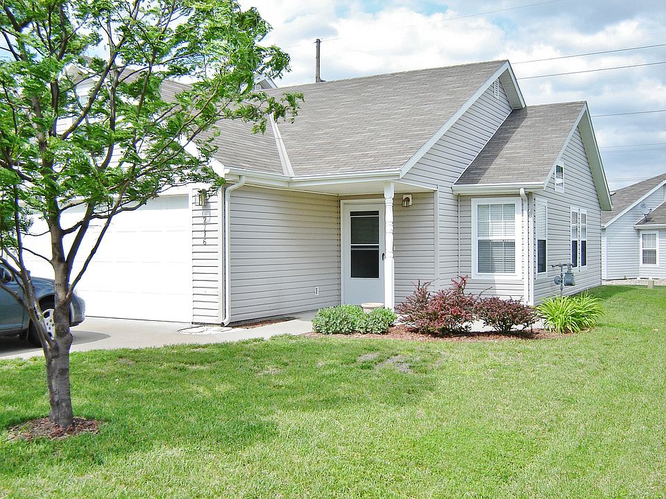 Looks like new, fresh paint, open floor plan, vaulted ceilings, 2 car garage with storage in the attic above garage with pull down stairs. The utilities are very low, average gas is 25 in summer and 75 in winter and 25 for electricity in winter and 75 in the summer. Laminate floors in living area, tile in bath and carpet in bedrooms. Close to Eisenhower middle school, Northview Elementary, and KSU. Very well maintained and is ready for you to move right in. LOW SPECIAL TAXES.