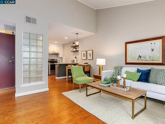 Gorgeous, move-in ready, unfurnished remodeled 3-bedroom, 2-bathroom condo in a desirable downtown location. Ideally situated just blocks from BART, freeway access, Iron Horse Trail, Bay Club, Walden Park, shopping, dining, and located within the excellent Walnut Creek School District. This light-filled unit features high vaulted ceilings and modern, high-end finishes throughout. The upgraded kitchen offers quartz countertops and stainless steel appliances, while the remodeled bathrooms showcase sleek, contemporary design. Beautiful hardwood floors throughout the home; no carpet. New windows and sliding glass doors enhance comfort and natural light. A separate private entrance and a private patio off the living room create the feel of a home rather than a typical condo, offering excellent privacy and indoor-outdoor living. Additional outdoor space includes two decks off the bedrooms, ideal for relaxing. Additional highlights include EV charging at the covered carport, two parking spaces (one covered carport space plus one additional assigned space), a separate dedicated storage room, and a community pool. A rare opportunity to lease a beautifully updated home in a prime, commuter-friendly location.