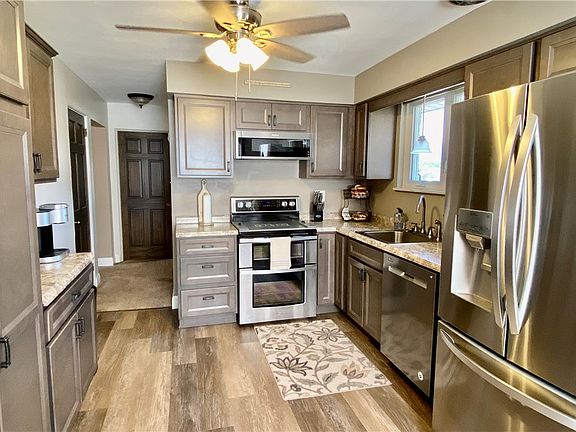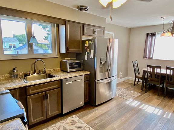 This gorgeous, all brick ranch home has been meticulously maintained. It features a covered front porch, an open and spacious living room with fireplace and bay window as well as an open floor plan. The equipped kitchen is brand new and features gorgeous cabinets, countertops and new flooring. There is an eat-in dining area, too. The bedrooms are large and bright. They all have a ceiling fan, closet and carpeting. There are 1.5 baths located on the first floor. You will love the finished lower level! It features wo spacious game rooms, one with a dry bar. There is also a storage room, laundry room and additional 1/2 bath. Additional parking is available in both the lower and upper driveways. The huge yard is fenced by vinyl fencing and features a spacious shed, garden area and patio. Many updates have been completed on this home. There is a home warranty as well!