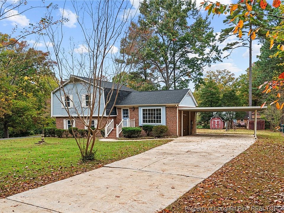 Completely remodeled tri-level home in west Sanford. Located less than 5 minutes from US 1 making it convenient to Raleigh, Southern Pines, and Ft. Liberty. Home has a Brand new roof, screened porch, paint, carpet, LVP flooring, light fixtures, vanities, granite countertops and brand new stainless steel appliances. The main floor has a large living room, dining room and kitchen. Upstairs has 3 nice sized bedrooms, and 2 full bathrooms. Unique lighting in 2 of the upstairs bedrooms allowing you to change the color of the light bulb. The downstairs has a large den with a gas log fireplace perfect for entertaining or relaxing, a laundry room with half bath, and an extra room that can be used as a 4th bedroom or office. Large corner lot with a beautiful screened in porch and additional outside storage. The seller really paid attention to the details in this home! Schedule a showing today because it won't last long!