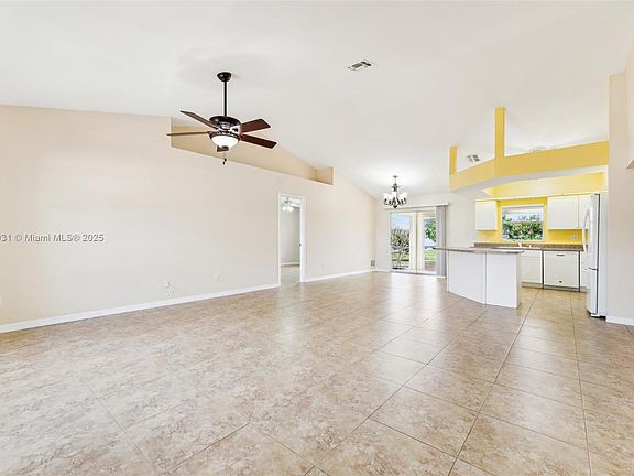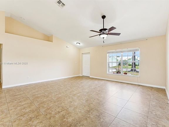 This cozy 4-bedroom, 2-bath home in SW Cape Coral offers a bright, open layout with high ceilings and plenty of natural light. The spacious master suite includes dual sinks, and the screened-in lanai opens to a generous backyard with room for a pool. Enjoy the tropical feel with several mature mango and avocado trees. Conveniently located near shopping and dining off Pine Island Road, this home combines comfort, space, and a great location.