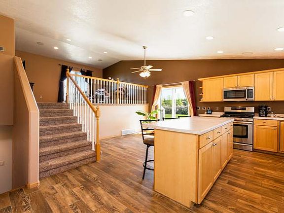 Looking for land and privacy on the edge of town? You found it! This 1.97 acre property is right on the edge of town and is all you have been waiting for. The home features 4 bedrooms, 2 baths and the Main level is open and full of natural light. The kitchen is a great size with center island, tile flooring, and window that overlooks the uninterrupted views for miles. There is a large deck off of the living room with great privacy as the lot is surrounded by trees. The upper level hosts 2 bedrooms and full bath. The lower levels boast a sizable family room w/fireplace suitable for all of your relaxing & entertaining needs, 2 additional bedrooms, bathroom, and Laundry Room w/office capabilities! This home features an attached 3 stall garage w/water, heat, & Floor drain!