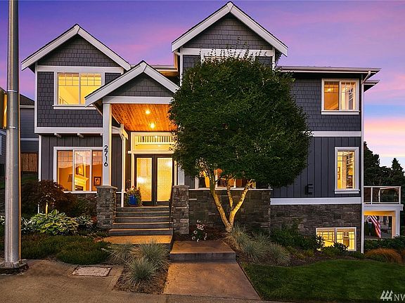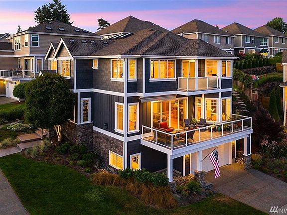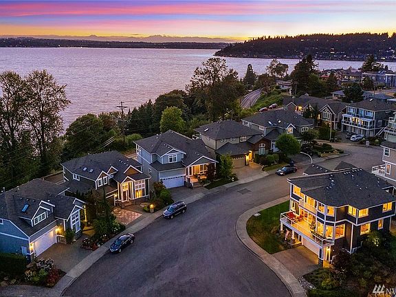 Take in year-round sweeping views of Lake Washington from this stylish Clover creek residence nestled in a desirable cul-de-sac with SW exposure. Meticulously maintained and improved by the current owner with new deck surface, new siding (south side), new exterior paint, new appliances, and new landscaping with artificial turf, terraced view patio & firepit. Great layout with 4 beds, 3.25 baths, high ceilings, and 3-car tandem garage. Easy commute and Gene Coulon Beach just a short stroll away!